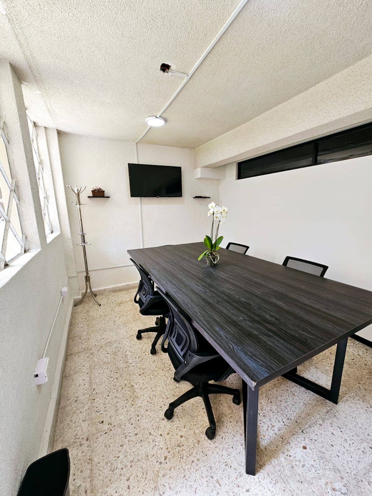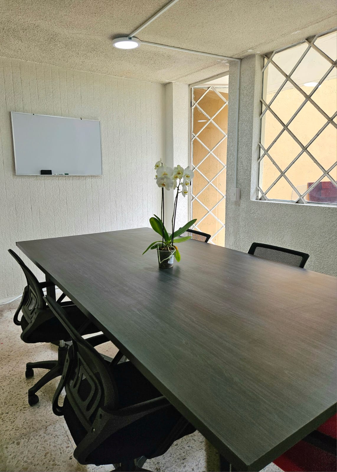 Espacio cómodo con iluminación natural, ideal para operación diaria eficiente. Incluye 3 horas de sala de juntas al mes.